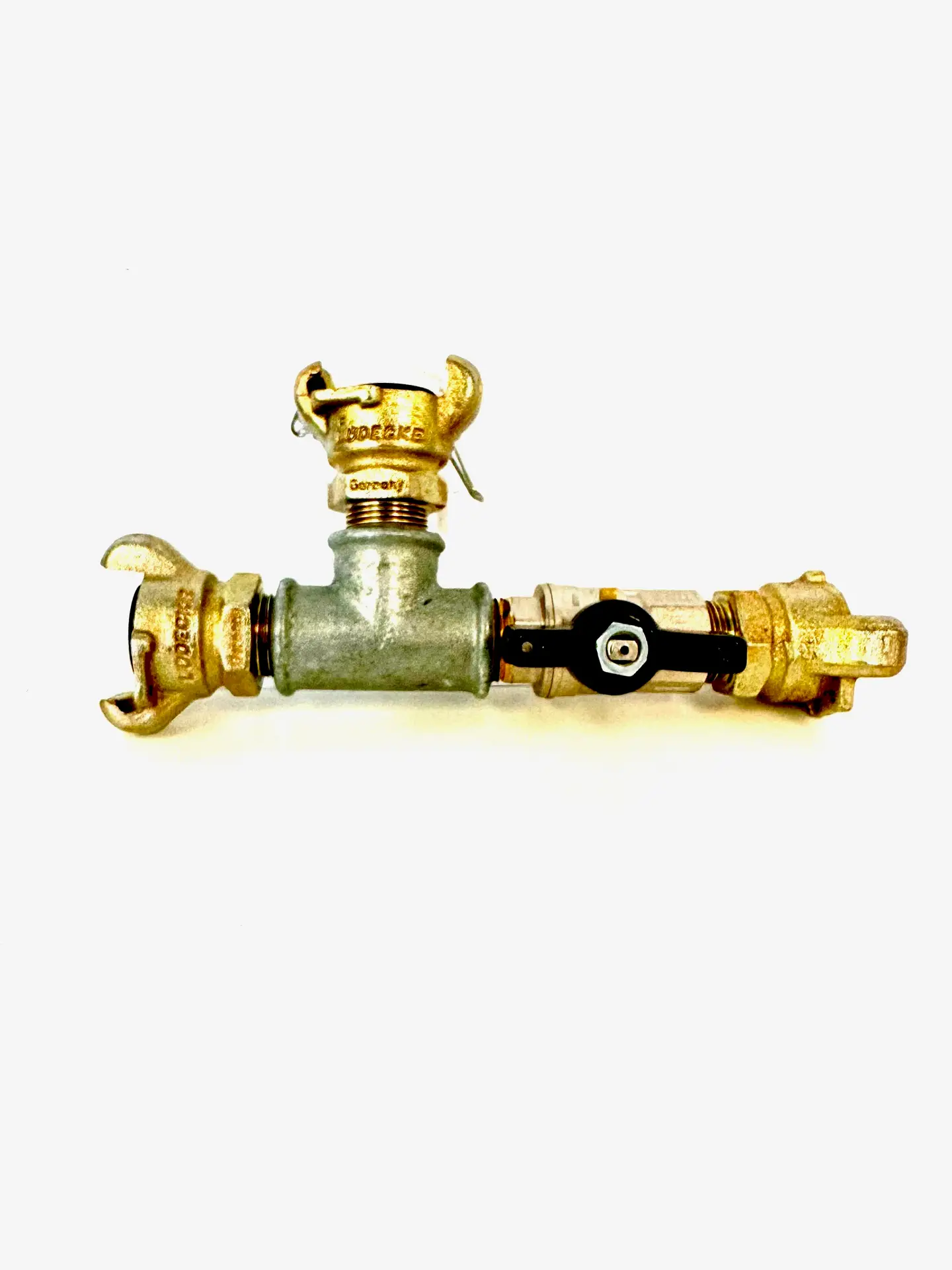 Made with Ludecke Chicago Couplings from Germany with a on/off ball valve.